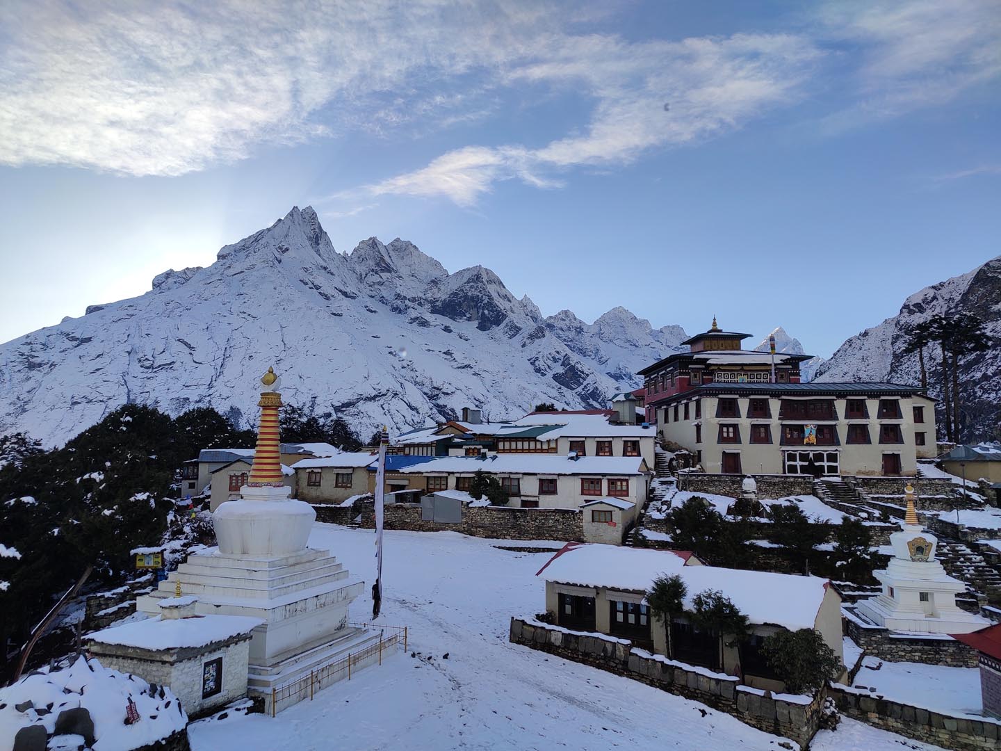 The beautiful Imja Khola Valley offers up marvellous views of fabulous peaks and glaciers, as does the highest camp of the trek, at Gorak Shep, from where begins the ascent of Kala Patthar (5545m). At last there will be a sighting of the familiar black, rocky, triangle shape of the south-west face of Everest, with a day visit to the focus of this trek – Everest Base Camp. After this undeniably demanding visit to EBC, a more serene activity is a visit to the celebrated Thyangboche Monastery, the region’s most important centre of Buddhism, but more than worth the effort if just because of its fame.